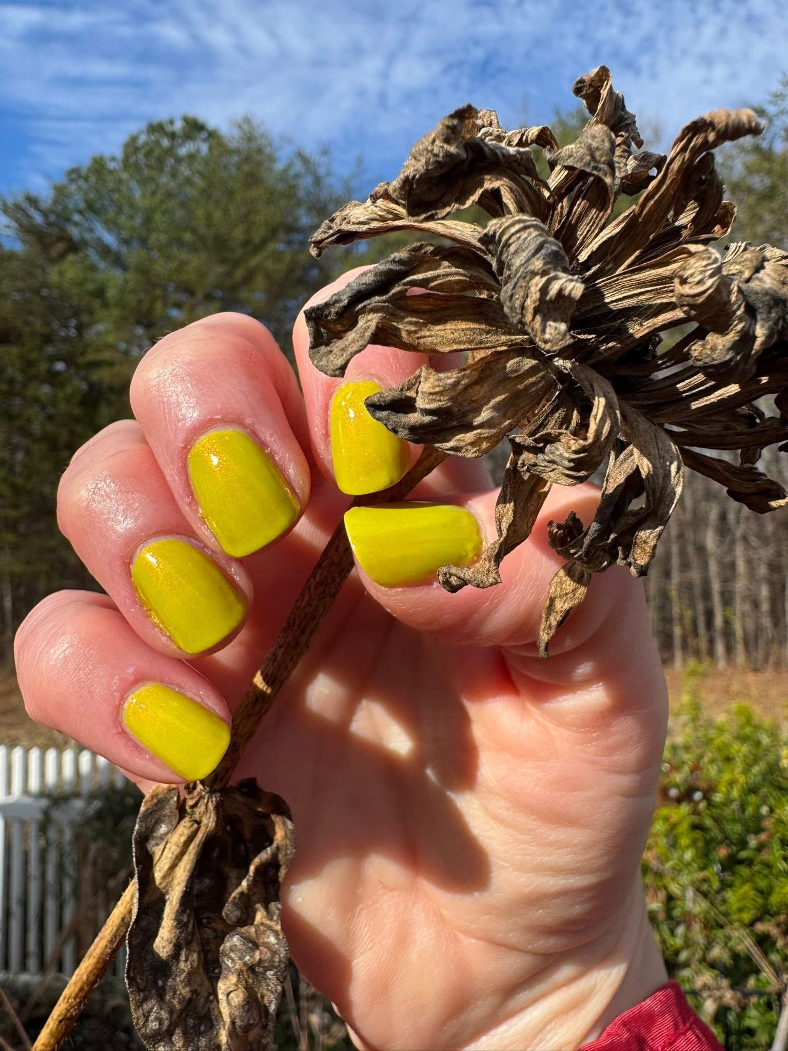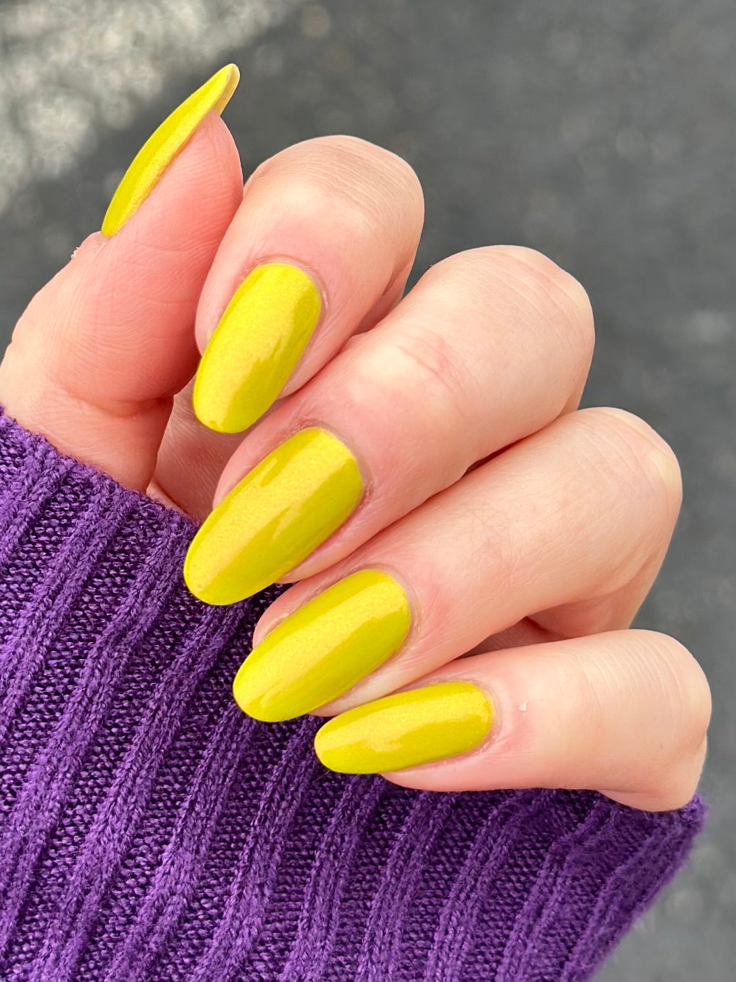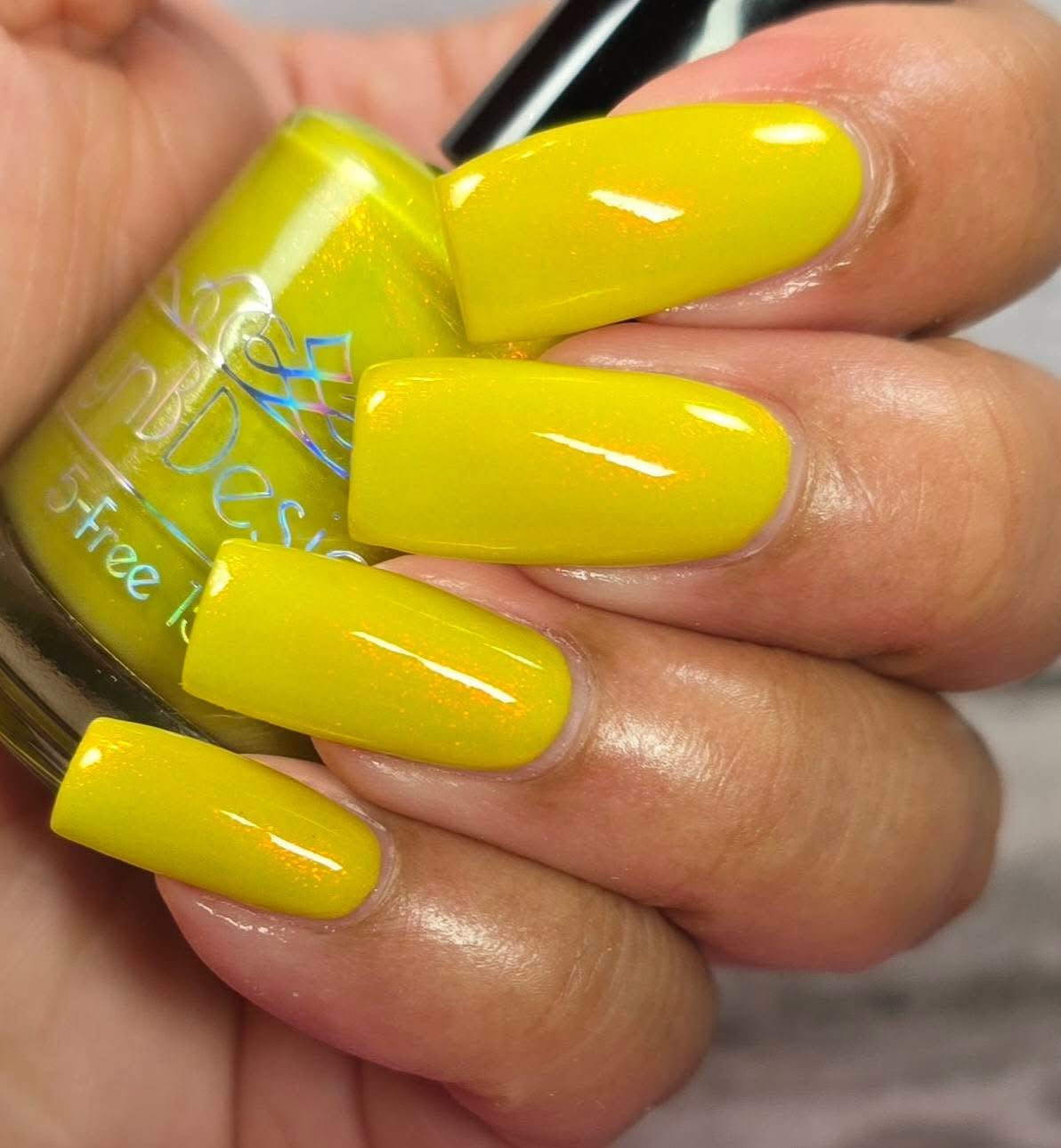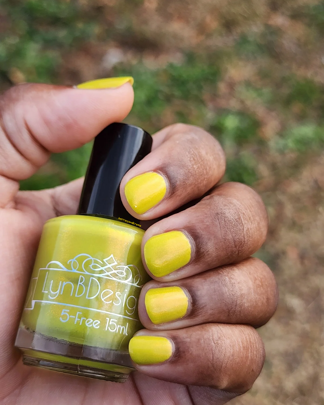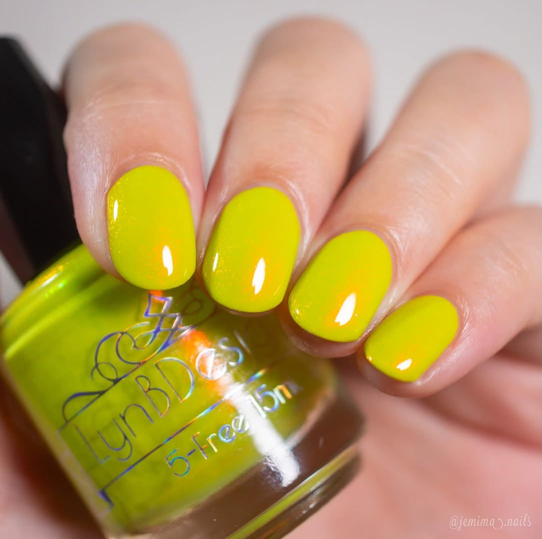 My Boo- light chartreuse base with red to orange to gold shifting shimmer